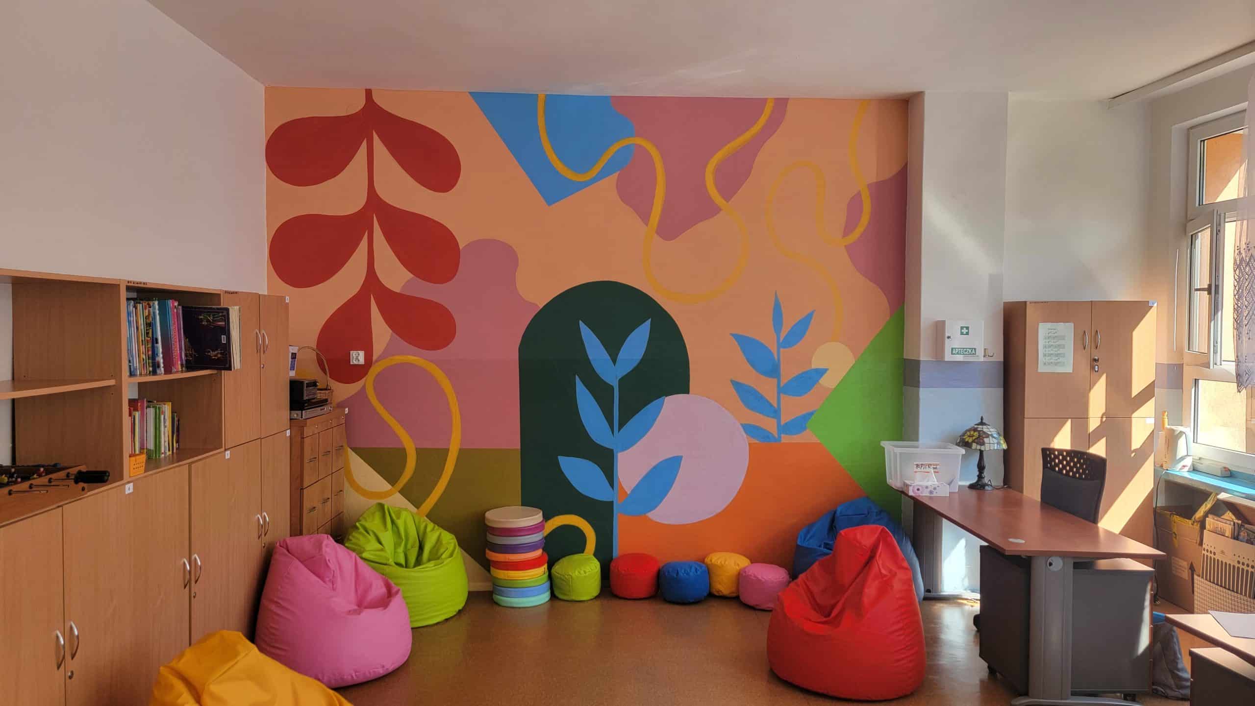 Mural z budżetu obywatelskiego z wizerunkiem patrona szkoły
